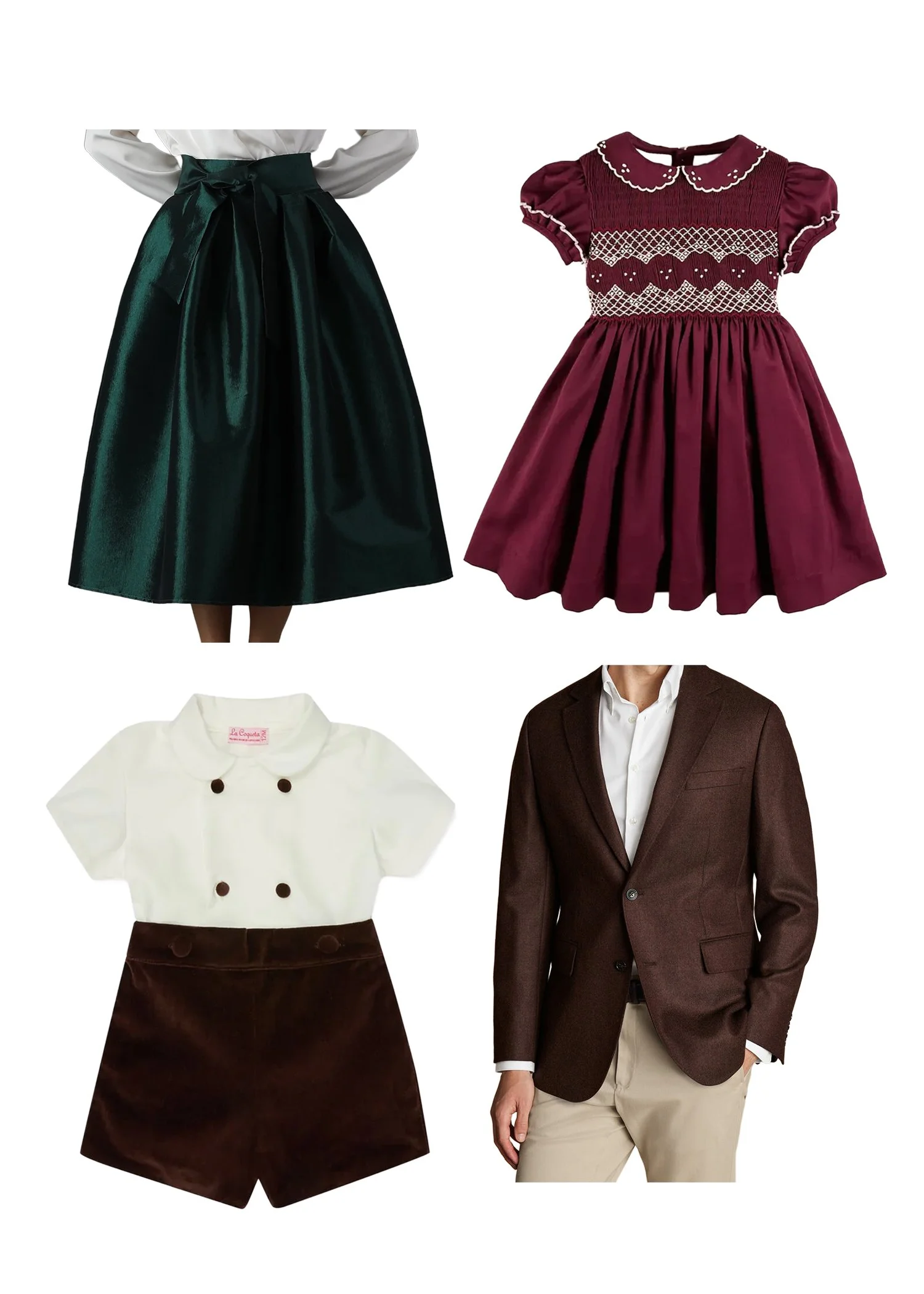 A semi-formal look that feels festive yet timeless — think soft neutrals, deep greens, and textured fabrics that add warmth without overwhelming your photos.